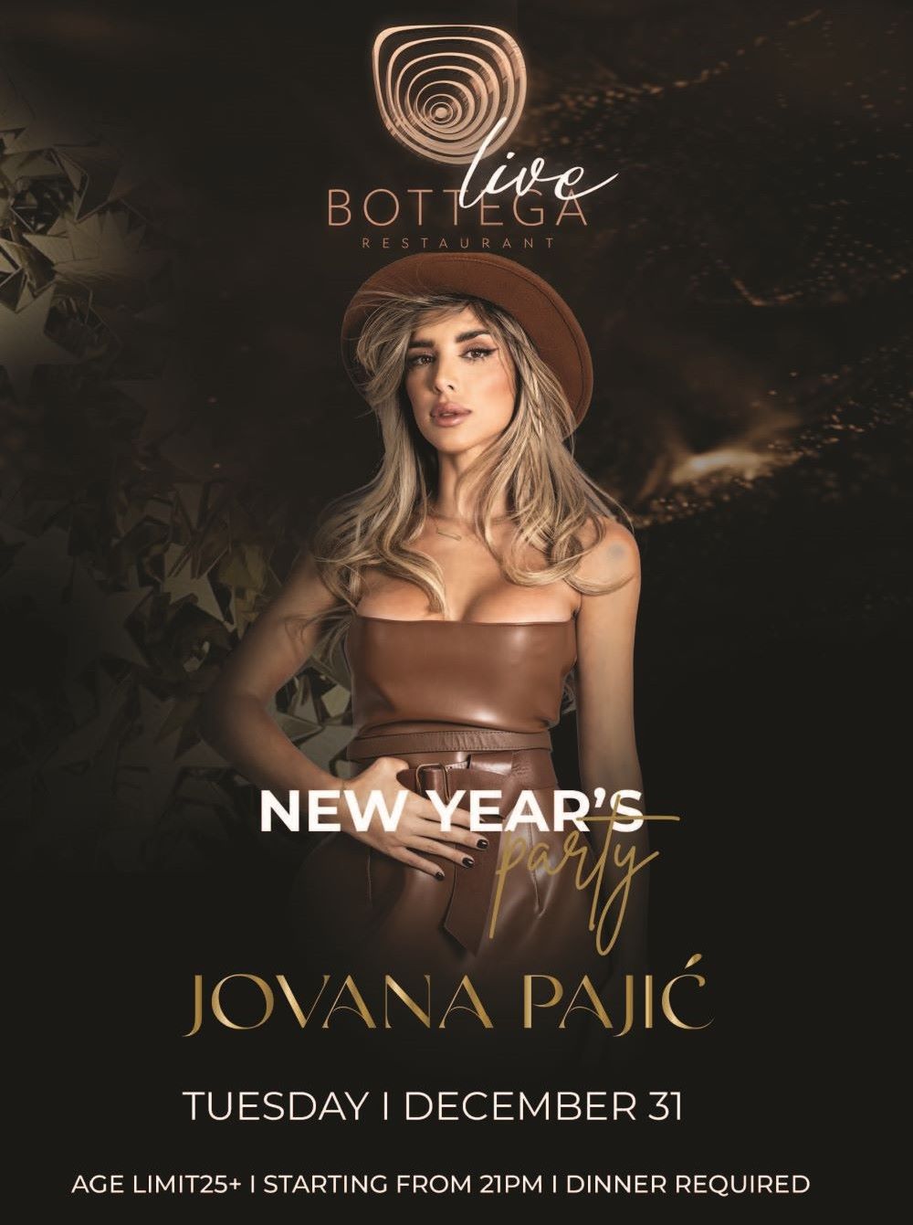 Ako želite da u novu godinu uđete uz muziku koja budi emocije i ambijent koji podseća na obale Italije, Jovana Pajić Doček Nove godine 2025 u restoranu Bottega , u sklopu šoping centra Galerija, pravi je izbor za vas.