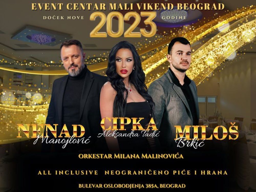 U novogodišnjoj noći, publiku će zabavljati trojac koji garantuje odličan provod – Nenad Manojlović, Miloš Brkić i Aleksandra Tadić Cipka, uz pratnju orkestra Milana Malinovića. Spremite se za bogatu trpezu, neograničeno piće i pravo muzičko putovanje kroz hitove koje svi volimo.