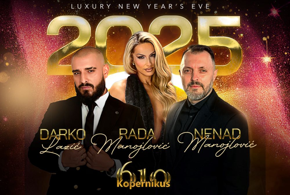 Nenad Manojlović Doček Nove godine 2025 najavljuje glamuroznu novogodišnju noć u Event Centru Kopernikus 610 ! U društvu još dve velike muzičke zvezde – Darka Lazića i Rade Manojlović – Nenad će se pobrinuti da publika uživa u nezaboravnom programu, punom energije, emocija i hitova koji će zagrejati atmosferu do maksimuma.