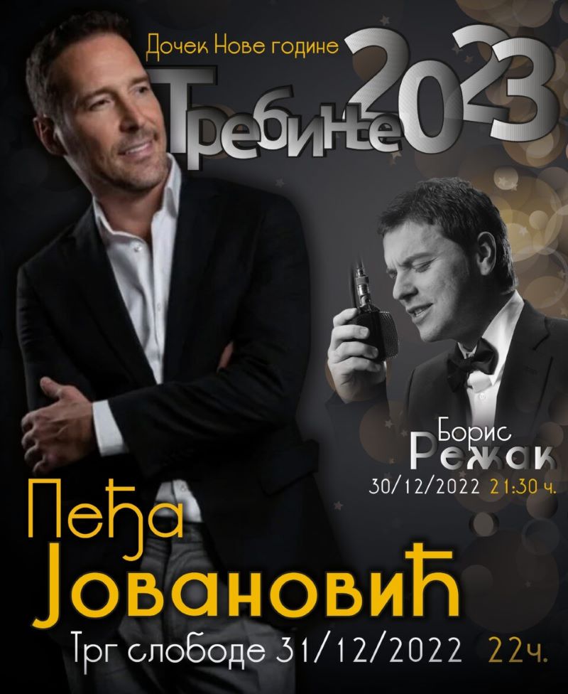 Trebinje će 31. decembra 2022. godine zasijati u prazničnom duhu, a glavni razlog za to biće spektakularan nastup Peđe Jovanovića. Jedan od najtraženijih izvođača na regionalnoj muzičkoj sceni, Peđa će na Trgu slobode prirediti doček za pamćenje. Publiku očekuju hitovi u njegovom prepoznatljivom stilu, jedinstvene obrade i energija koja će Trebinje uvesti pravo u 2023. godinu.