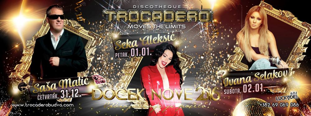 Saša Matić za Doček Nove godine 2016 prirediće svojim fanovima nastup u prepoznatljivom stilu – sa puno emocije, vrhunskom muzikom i atmosferom koja se pamti. U čuvenom klubu Trocadero, u srcu Budve, očekuje se spektakularan nastup jednog od najvoljenijih izvođača narodne muzike, koji će publiku voditi kroz hitove koje svi znamo i volimo.