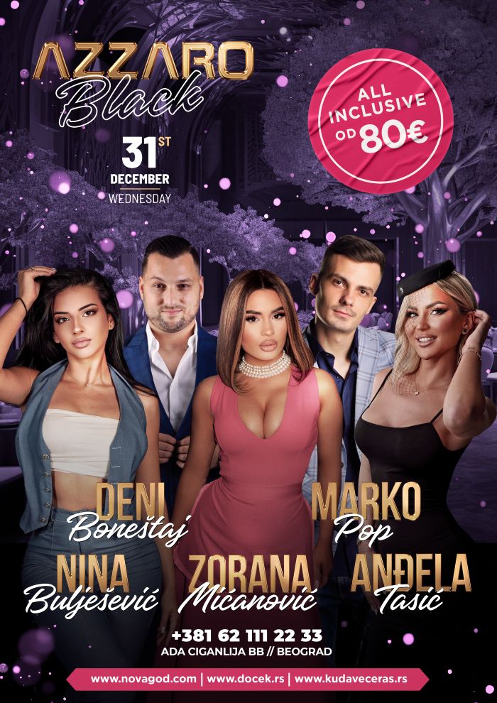 Zorana Mićanović Doček Nove godine 2026 nastupaće u tri elitna Azzaro prostora na Adi Ciganliji – Azzaro Black, Azzaro Green i Jezero By Azzaro – gde će se za najluđu noć u godini stvoriti jedinstvena muzičko–scenska magija i atmosfera kakva se u Beogradu retko doživljava.