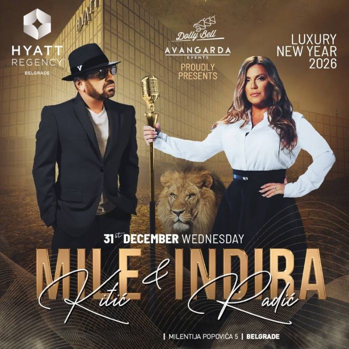 Hotel Hyatt doček Nove godine 2026 biće specijalno novogodišnje veče u kojem ćete posebno uživati! Uz mega zvezde regionalne muzičke svene Mileta Kitića i Indiru Radić očekuje vas nezaboravan provod i muzički spektakl koji se ne propušta!
