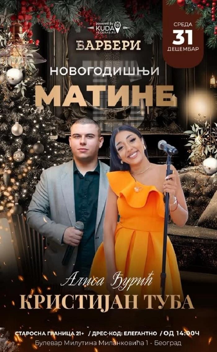 DOČEK NOVE GODINE 2026 KAFANA BARBERI MATINEE
