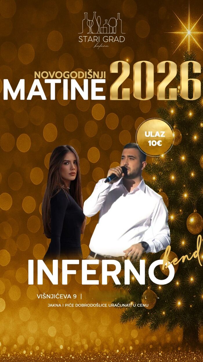 I za ovaj novogodišnji matinee očekuje vas nezaboravan provod u kafani Stari grad! Za atmosferu je zadužen Inferno bend.