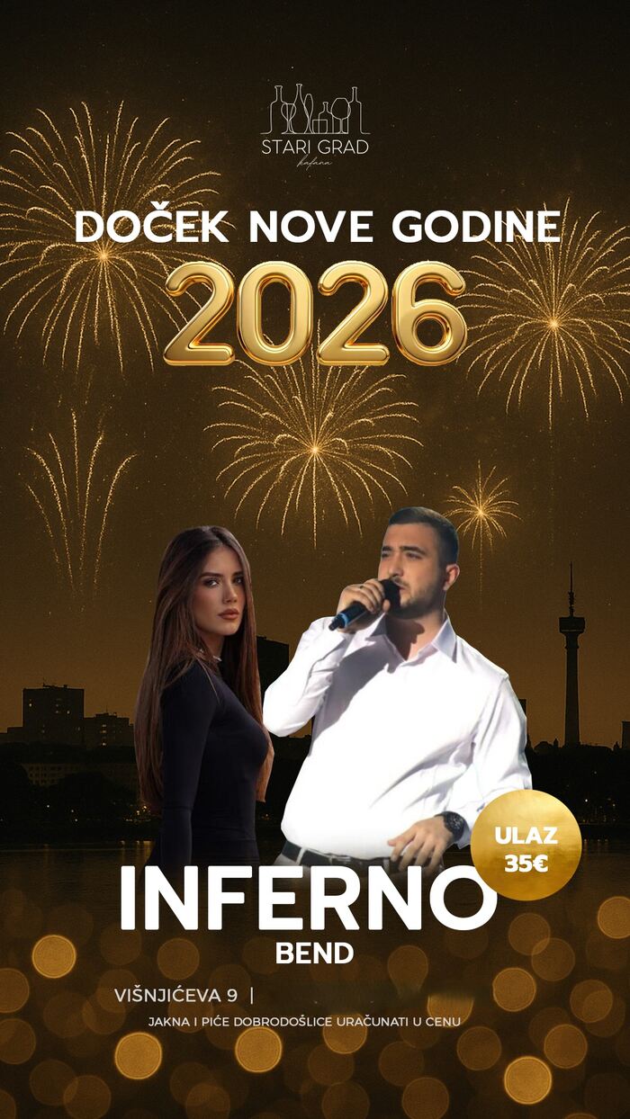 I za ovu novogodišnju noć očekuje vas nezaboravan provod u kafani Stari grad! Za atmosferu je zadužen Inferno bend.