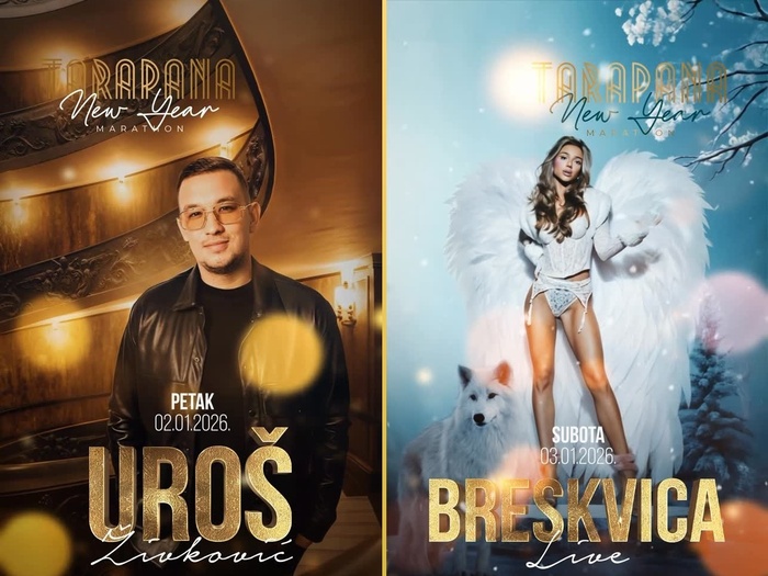 Novogodišnji maraton 2026 klub kafana Tarapana je pripremila popularnu ponudu i vrhunski muzički program, u noći 2. januara zabavljaće vas muzička zvezda Uroš Živković, dok će 3. januara muzički spektakl prirediti Breskvica.
