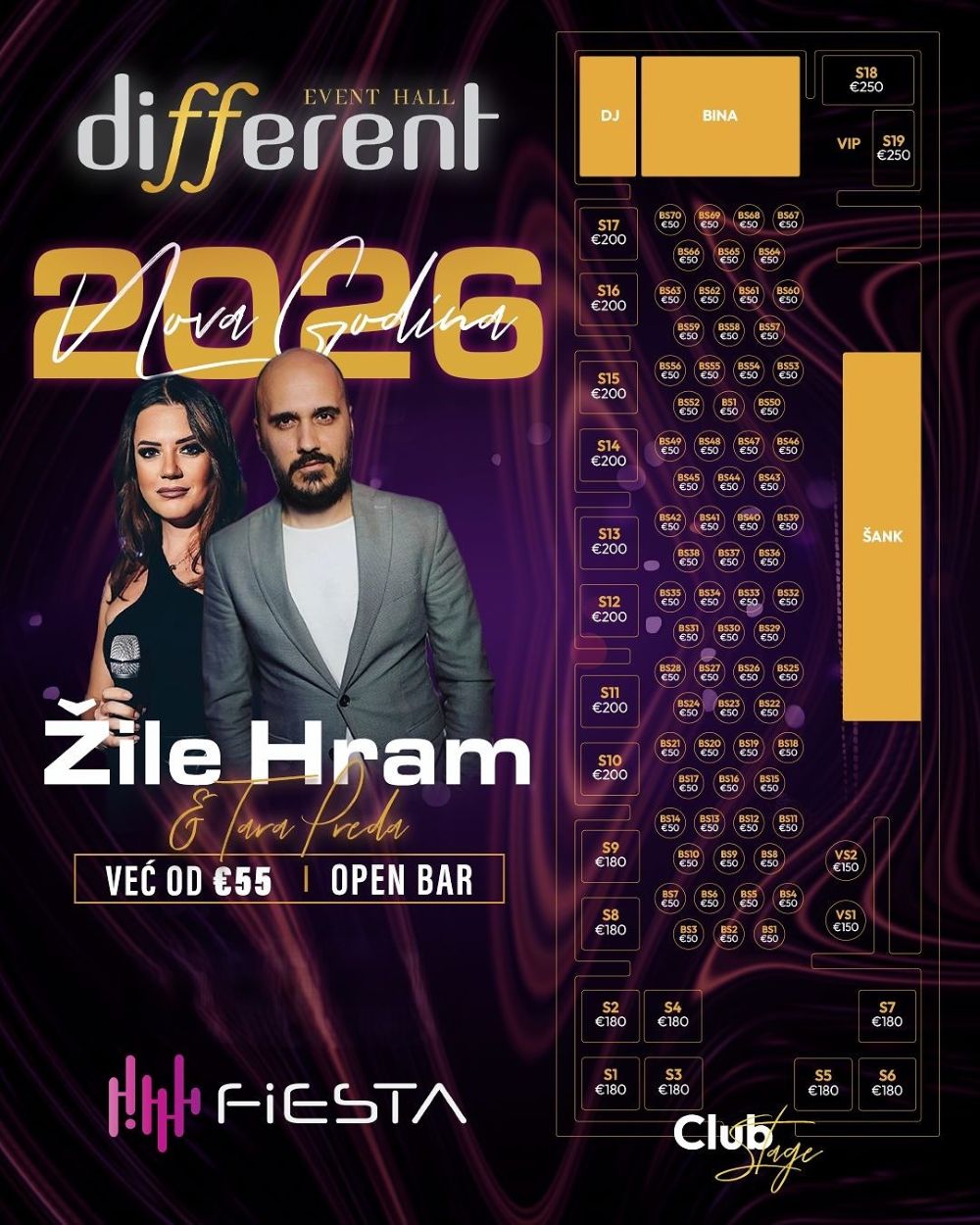 Ako tražiš urban doček sa stilom i energijom, onda je Different Event Hall Club Stage Nova godina 2026 pravo mesto za tebe!