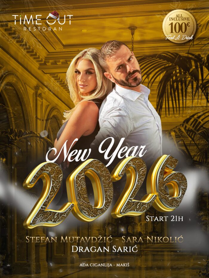 Restoran Time Out Nova godina 2026 prirediće vam nezaboravnu novogodišnju noć u kojoj ćete istinski uživati. Uz vrhunsku ponudu i odličan muzički repertoar dočekaćete Novu godinu na pravi način.