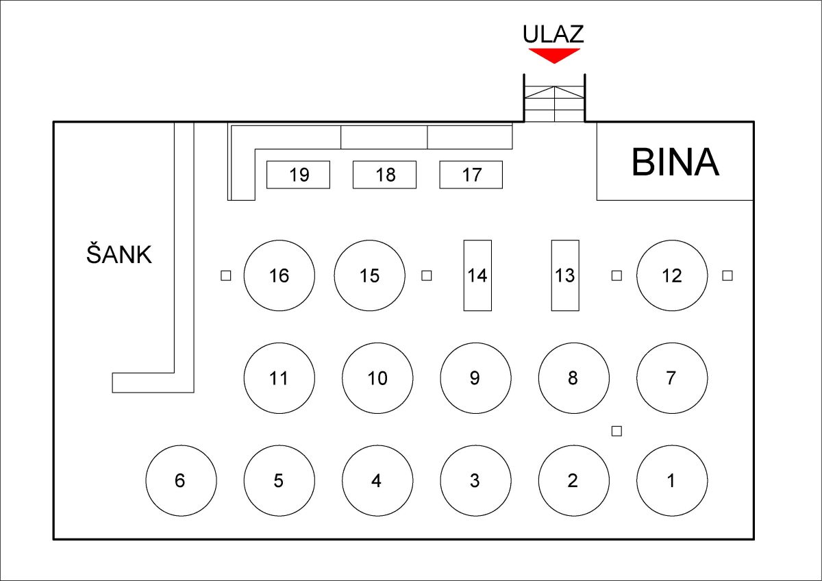 Uz svaku rezervaciju celog stola dobija se gratis i jedna flaša stranog žestokog pića po izboru: Johhnie Walker, Ballantine's, Smirnoff, Finlandia, Jagermeister.