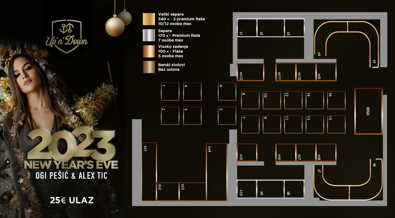 DOČEK NOVE GODINE 2023 KLUB UP N DOWN