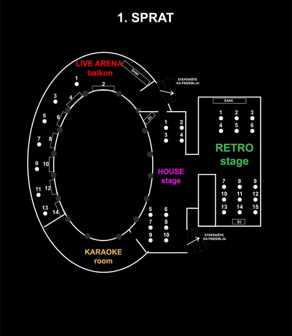 Najveći i najpopularniji Stage obuhvata dva nivoa. Prvi nivo je elipsastog oblika, a drugi je u obliku prstena i okružuje ceo prostor. Bareberi bend će svirati kvalitetnu domaću zabavnu i narodnu muziku, a u pauzama ga pokriva DJ sa najvećim hitovima domaće i strane muzike + vrhunsko ozvučenje i rasveta i 700 raspoloženih ljudi.