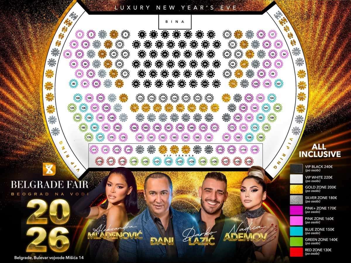 Beograd na vodi Belgrade Fair Nova godina 2026 predstavlja vrhunac ekskluzivnosti kada je doček Nove godine u Beogradu u pitanju. Prošlogodišnja proslava na ovom mestu postavila je visoke standarde, što je rezultiralo time da su svi posetioci bili izuzetno zadovoljni, u svakom aspektu. Sve je bilo na visini zadatka, od impozantne dekoracije i rasporeda sedenja, preko impresivne veličine bine, vrhunskog zvuka i osvetljenja, do izvanredne ponude hrane i pića, besprekorne usluge i gostoljubivog osoblja. Takođe, dužina trajanja proslave i dugotrajni nastupi pevača samo su dodatno upotpunili celokupno iskustvo.