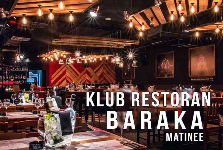 Klub restoran Baraka doček Nove godine matinee 2026 je sjajna prilika da se kvalitetno zagrejete pred doček Nove godine! Očekuje vas vrhunski provod u kojem ćete zaista uživati!