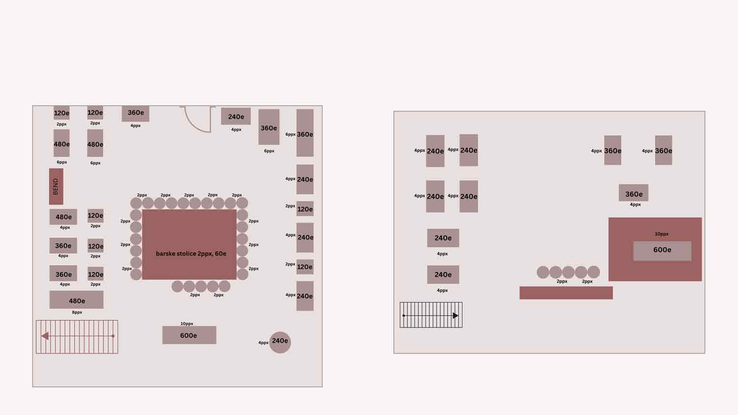 Sedenje 240€ (gratis flaša žestine)