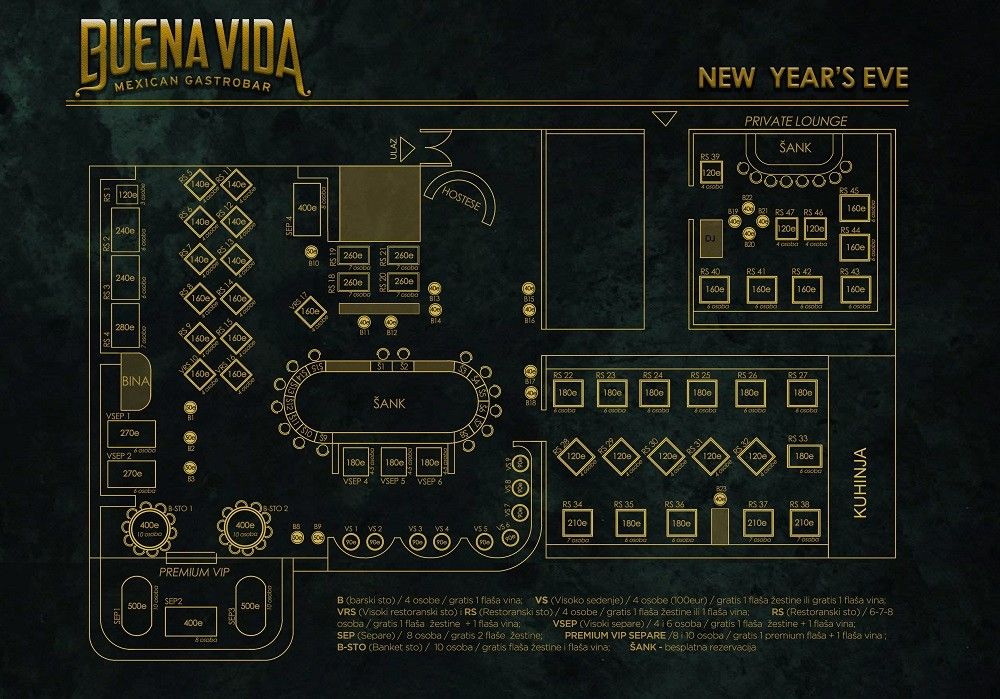 Rezervacije se posebno doplaćuju (sem mesta za šankom):