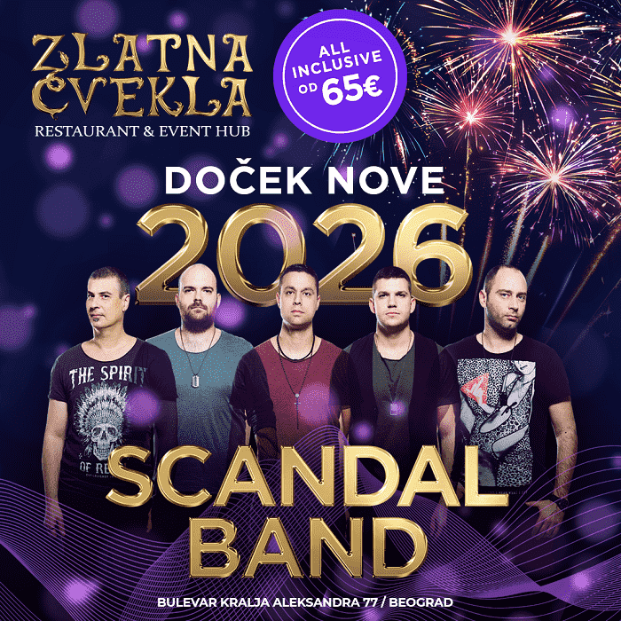 Potpuno nov, ekskluzivni restoran Zlatna Cvekla (ex City Hall) će u novogodišnjoj noći zasijati u punom sjaju - sa svečanim dekorom, blistavim svetlima kristalnih lustera i muzikom fantastičnog Scandal benda koji garantuje vrhunski provod i dobro raspoloženje.