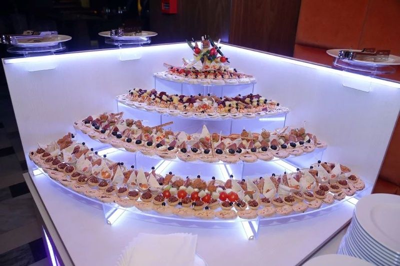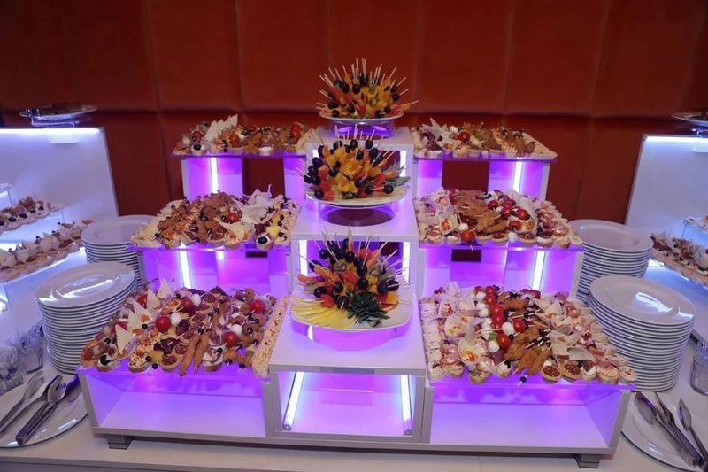 Svečana novogodišnja večera na bazi švedskog stola - buffet servis gde je sva topla/hladna hrana servirana na tople/hladne servisne disheve, plate i činije, gosti se sami služe.