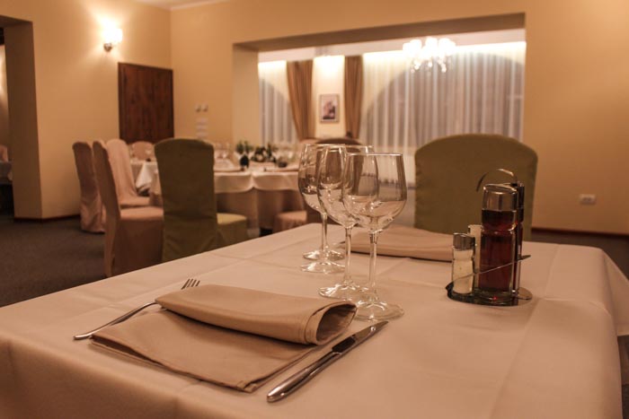 U ponudi nema barskih stolova, svako mesto je za banket stolom u svečanoj sali.