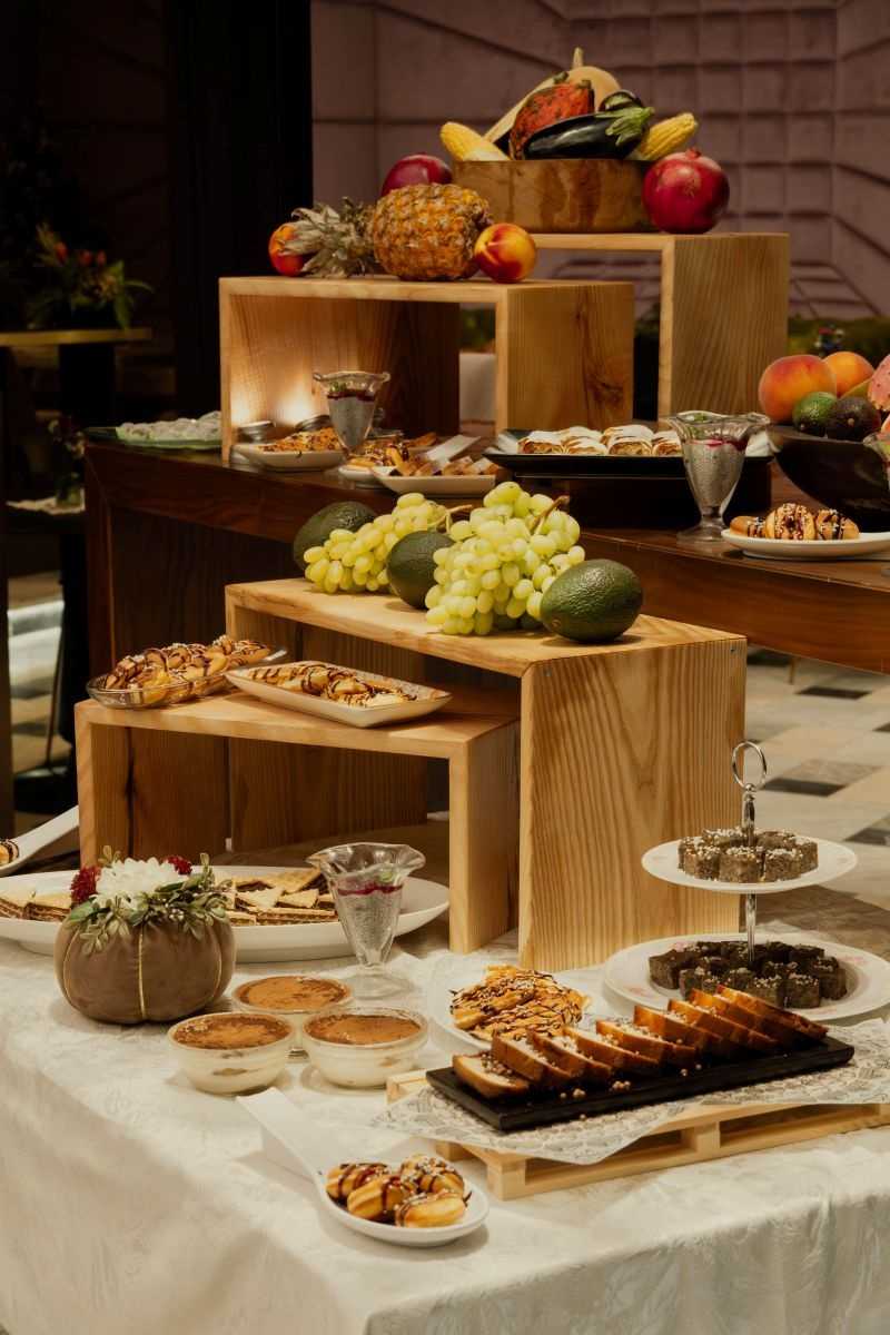 Svečana novogodišnja večera na bazi švedskog stola - buffet servis gde je sva topla/hladna hrana servirana na tople/hladne servisne disheve, plate i činije, gosti se sami služe.
