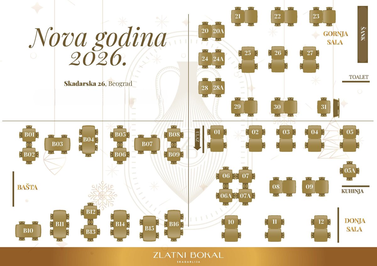 RESTORAN ZLATNI BOKAL DOČEK NOVE GODINE 2026